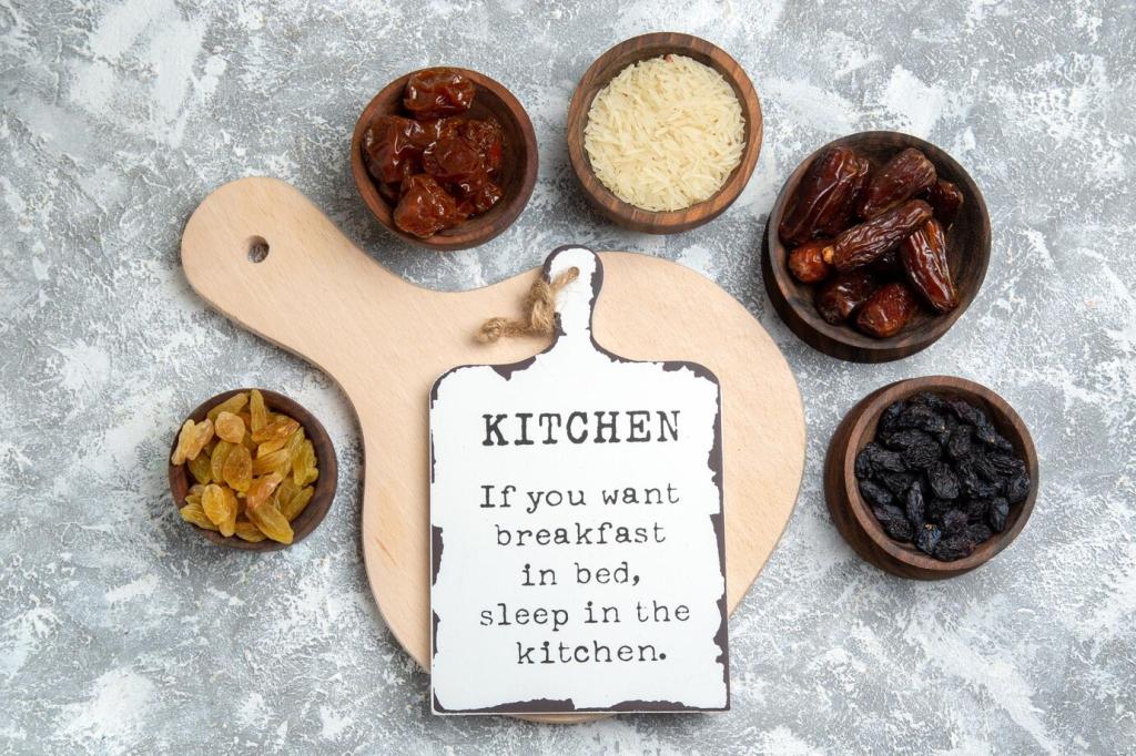 Gramm statt Gefühl, Grad statt Rätsel: Eine digitale Waage und ein Einstechthermometer übersetzen Buchangaben in kontrollierbare Realität. Besonders bei Backwerk, Fleisch und Zuckerarbeit sichern sie Qualität und schenken dir Vertrauen in jeden Schritt.
